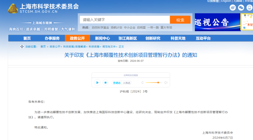 l 《上海市顛覆性技術創新項目管理暫行辦法》
