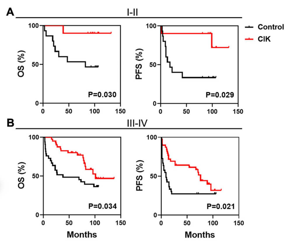 CIK組的總生存率(存活患者比例)達到66%,病情未惡化的比例(無進展生存率)為52%;而對照組這兩項數據僅為39.6%和29.2%。這表明CIK療法不僅延長了患者生命,也提高了生活質量。