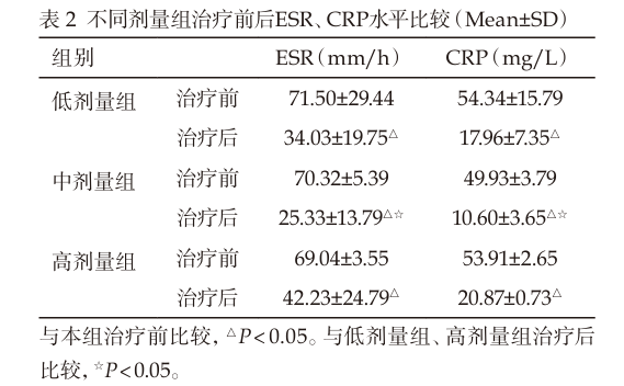 炎癥指標下降:同時,三組患者的CRP和ESR水平均較基線顯著降低,差異同樣具有統計學意義。