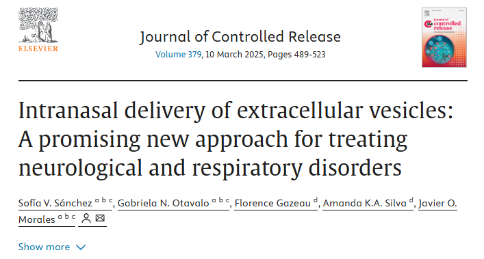 近期,智利圣地亞哥慢性病高級中心(ACCDiS)的科研團隊在行業期刊《Journal of Controlled Release》上發表了一篇名為《Intranasal delivery of extracellular vesicles: A promising new approach for treating neurological and respiratory disorders》的研究報告,為我們揭示了一種治療神經和呼吸系統疾病的全新且極具潛力的方法。