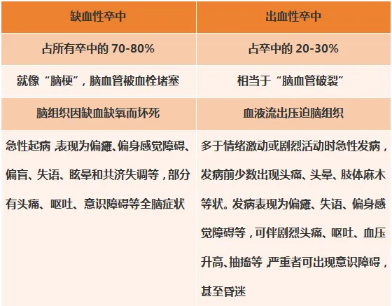 腦卒中,俗稱“中風(fēng)”,是一種由于腦部血管突然破裂或因血管阻塞導(dǎo)致血液不能流入大腦而引起的急性腦血管疾病。它主要分為兩大類: