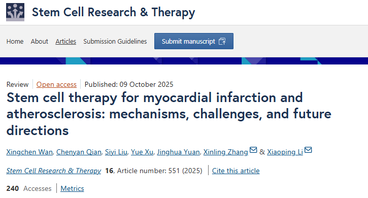 2025年10月9日,浙江樹人大學(xué)樹蘭國際醫(yī)學(xué)院的研究團隊在權(quán)威學(xué)術(shù)期刊《Stem Cell Research & Therapy》上發(fā)表了一篇重要綜述,系統(tǒng)總結(jié)了干細胞技術(shù)這一前沿領(lǐng)域在兩種主要心血管疾病——心肌梗死(MI)和動脈粥樣硬化(AS)方面的研究進展。